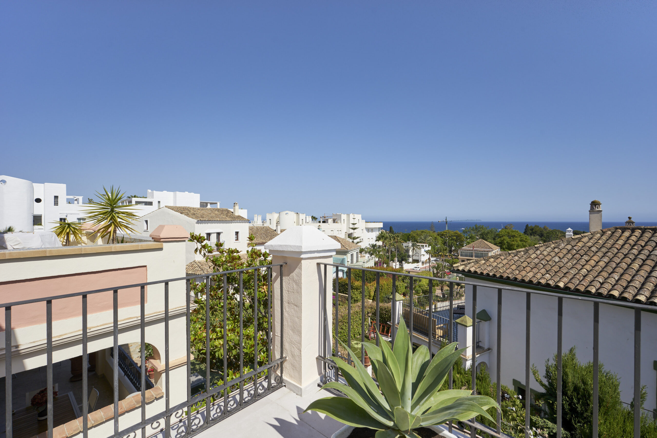 Elegant semi.detached townhouse strategically positioned in the heart of Marbella’s Golden Mile, just a short walk from historic Marbella Club Hotel. Surrounded by 209m2 of total building area (83m2 of basement and two upper floors of 63m2 each), this property offers seamless integration of convenience and sophistication. In additional features outdoors spaces of comfort with 37m2 patio, 4m2 porch, and 20m2 balcony.